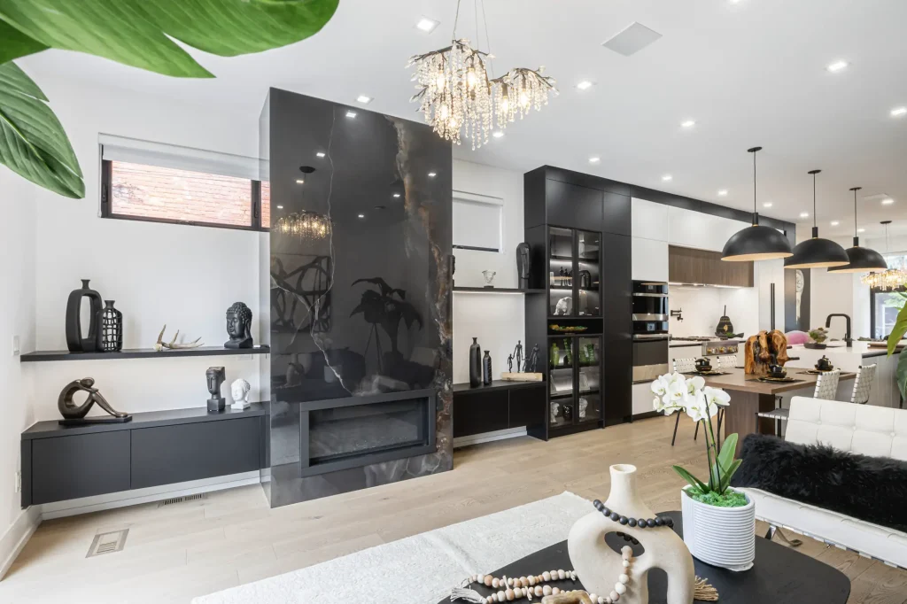 The Family Room Is A Statement In Modern Comfort, Boasting Soaring Ceilings, Rich Wood Floors, Designer Chandelier And A Sleek Gas Fireplace Accented By Italian-Imported Modern Cabinetry — Perfectly Balancing Warmth And Contemporary Flair.