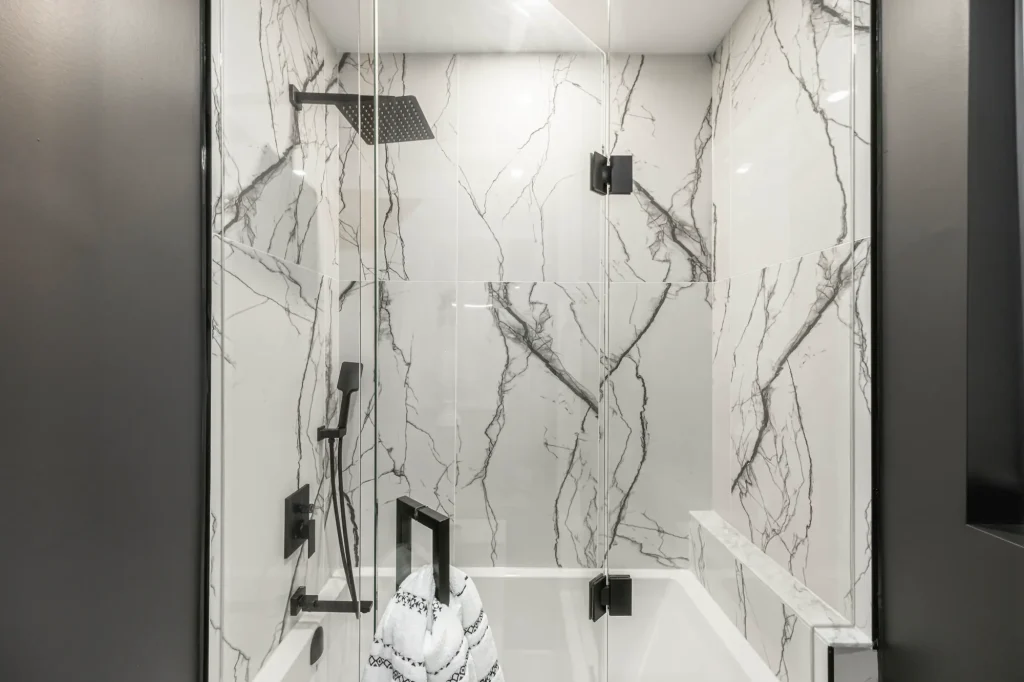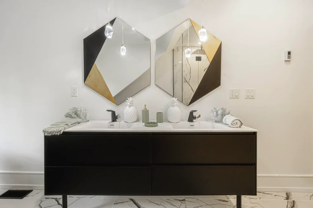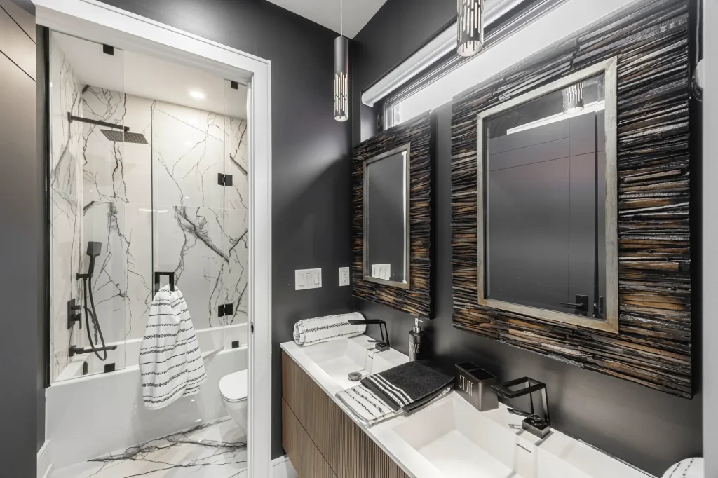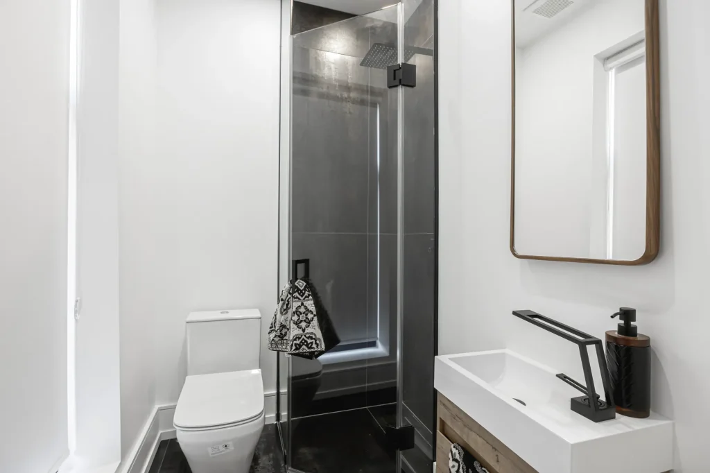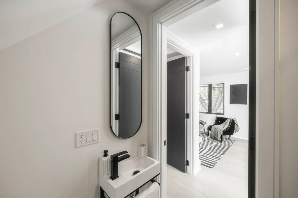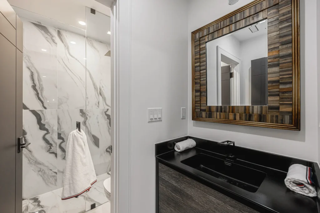An Alluring Modern Powder Room — Thoughtfully Designed For Both Privacy And Convenience — Gracefully Completes The Floorplan.