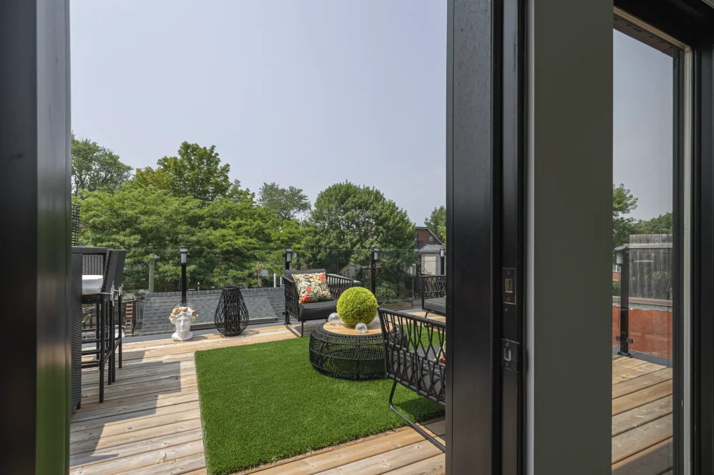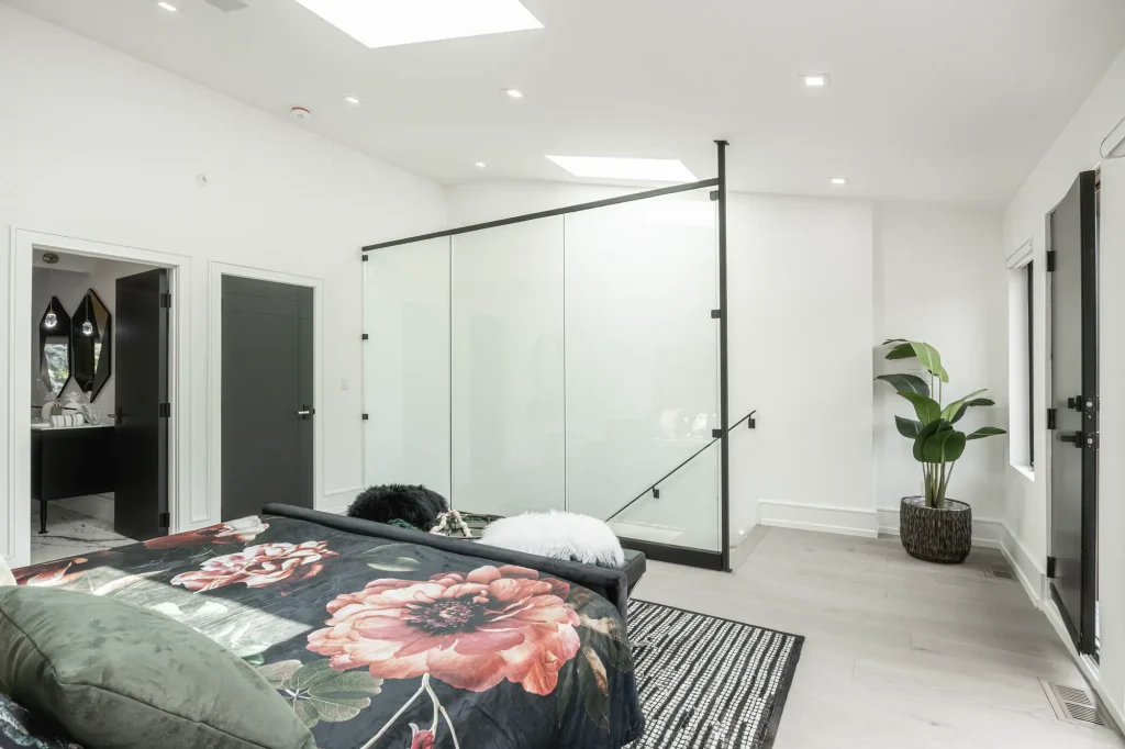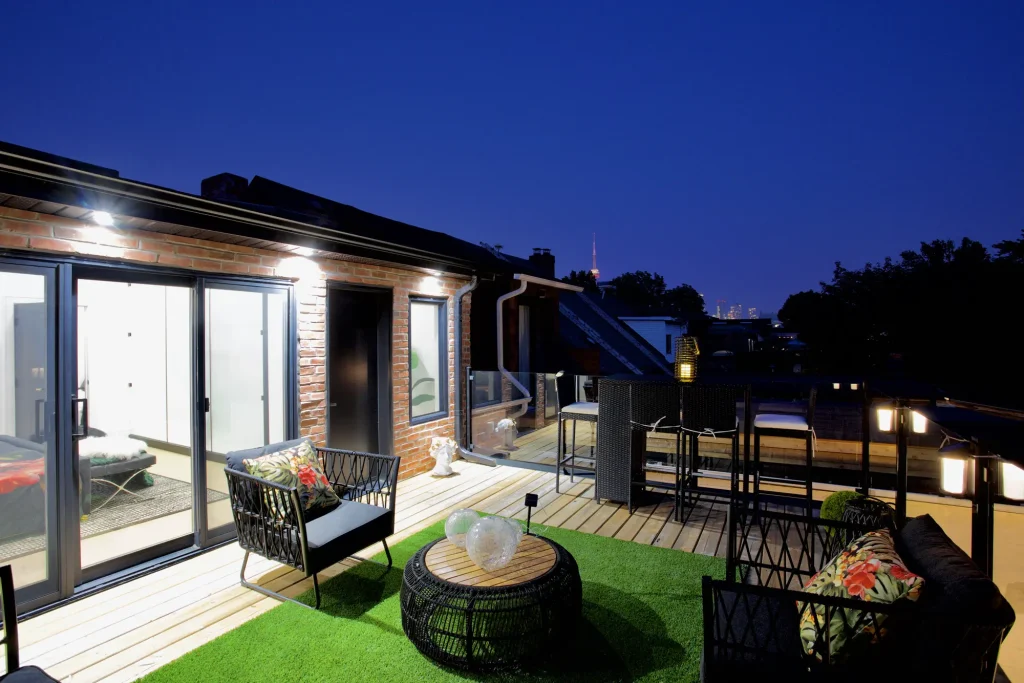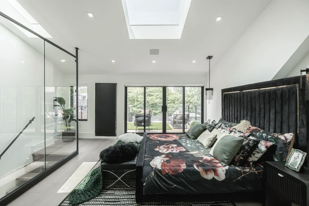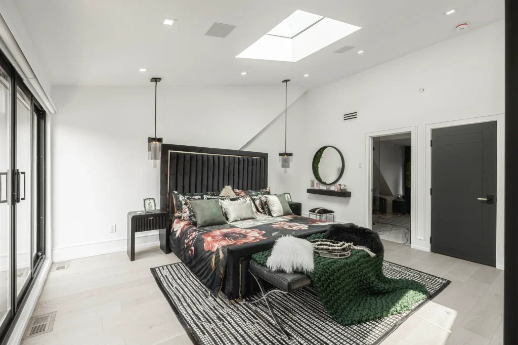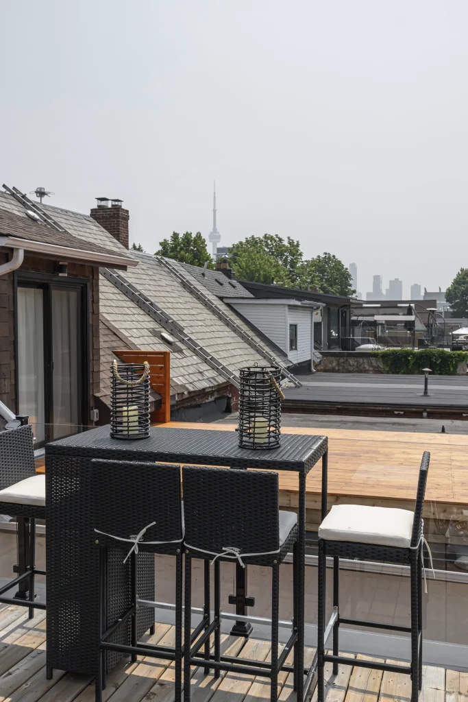 A Striking Skylight Staircase Guides You To The Serene Upper Level, Where The Primary Suite Serves As A Luxurious Retreat. It Features A Generous Walk-In Dressing Room With Custom California Closets, Modern Skylight, Designer Chandeliers And A Spa-Inspired Ensuite Adorned With Elegant Finishes, Including An Oversized Shower, Double Custom Vanity, A Freestanding Soaking Tub And Marvelous Chandeliers. This Private Sanctuary Offers An Expansive Bath Designed For Ultimate Relaxation. Step Outside Onto A Private Patio With Magnificent Views Of The CN Tower And Downtown Skyline — To Unwind And Take In Breathtaking Scenery.
