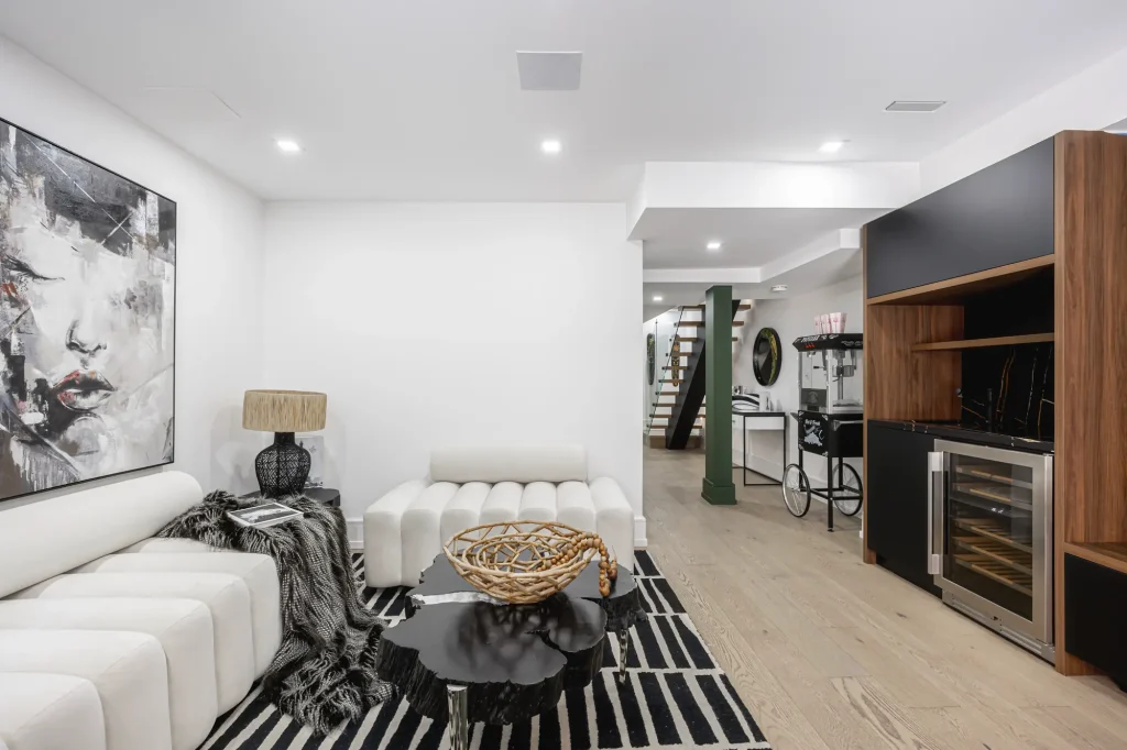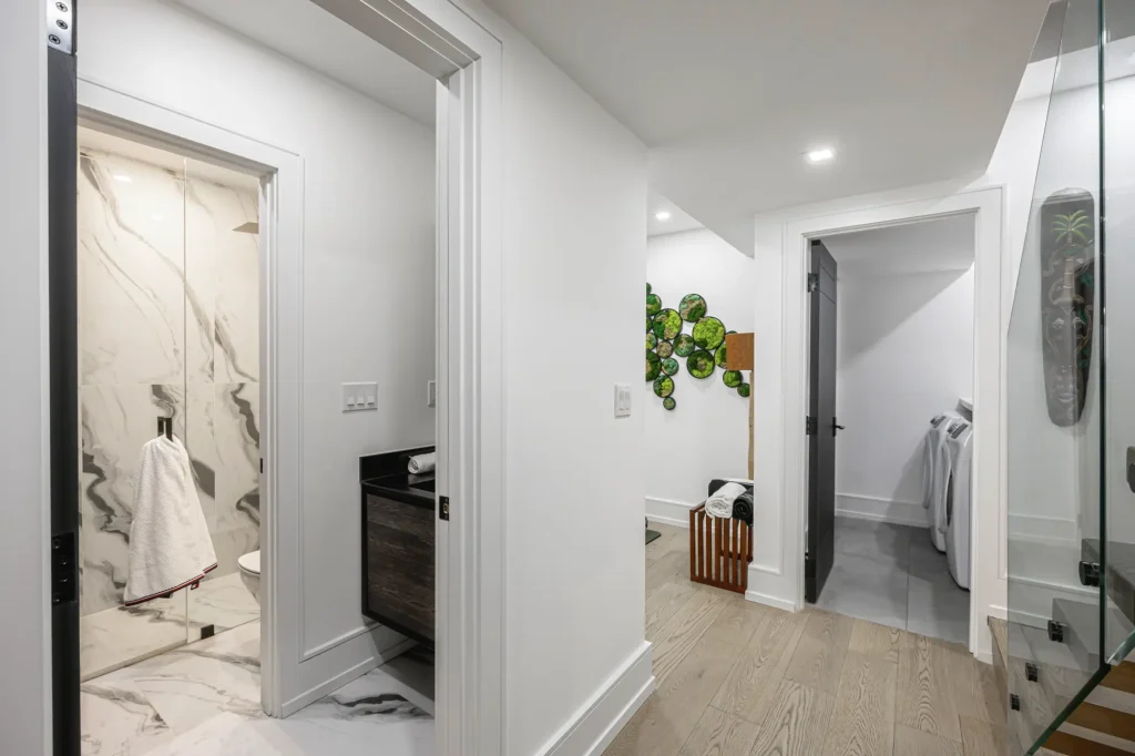 The Lower Level Is Thoughtfully Designed With Leisure And Wellness In Mind. Enjoy The Comfort Of Heated Floors Throughout, A Serene Yoga Room, Spacious Laundry Room With Built-in Cabinetry For Added Storage And Convenience, A Sleek Modern Bathroom, A Custom Wet Bar With Italian-Imported Modern Cabinetry And A Spacious Guest Bedroom — Ideal For Hosting Visitors Or Serving As A Nanny’s Quarters. A Convenient Walkout Leads Directly To The Backyard Oasis, Seamlessly Blending Indoor Comfort With Outdoor Tranquility.
